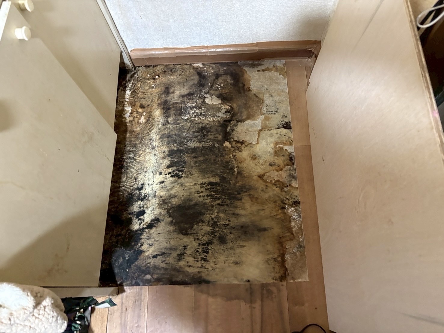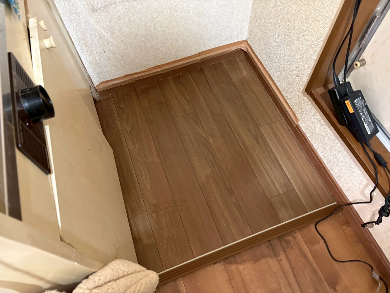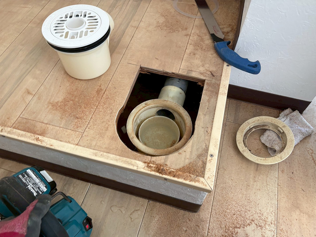 キッチン排水からの水漏れで床が腐ってました。しっかり排水ホースの補修をし、床の貼替えをしました。
