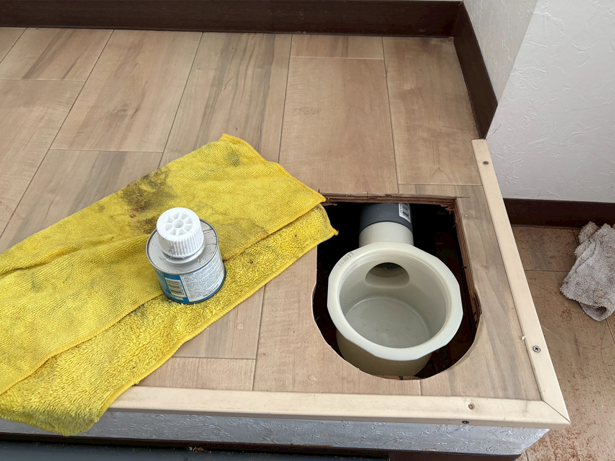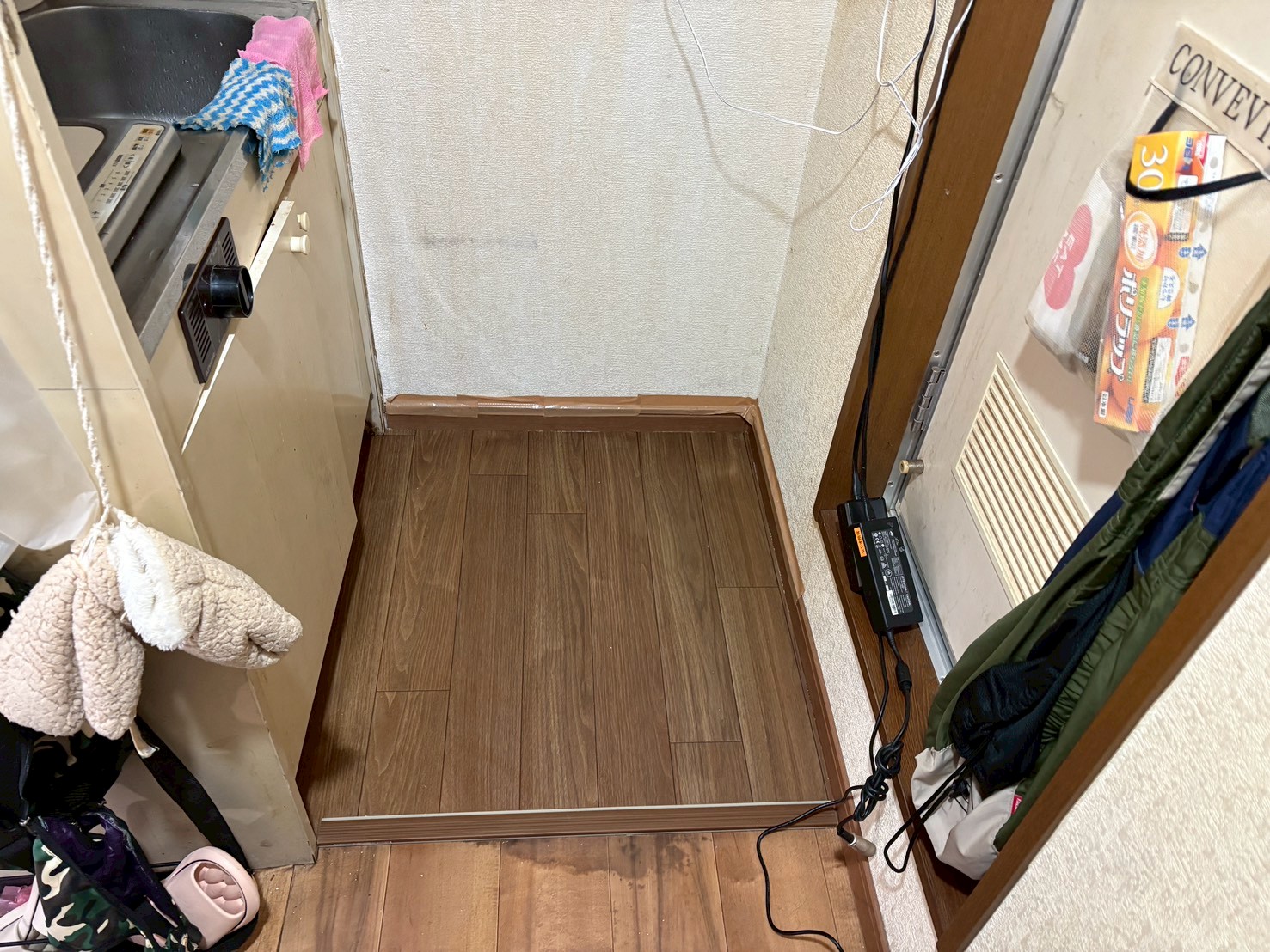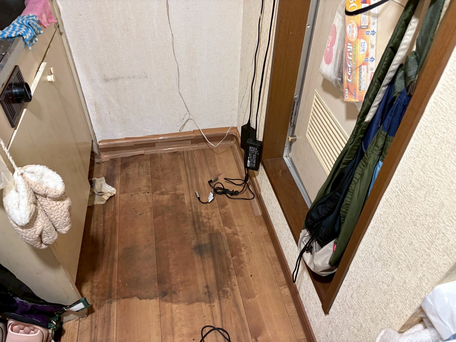 キッチン排水からの水漏れで床が腐ってました。しっかり排水ホースの補修をし、床の貼替えをしました。