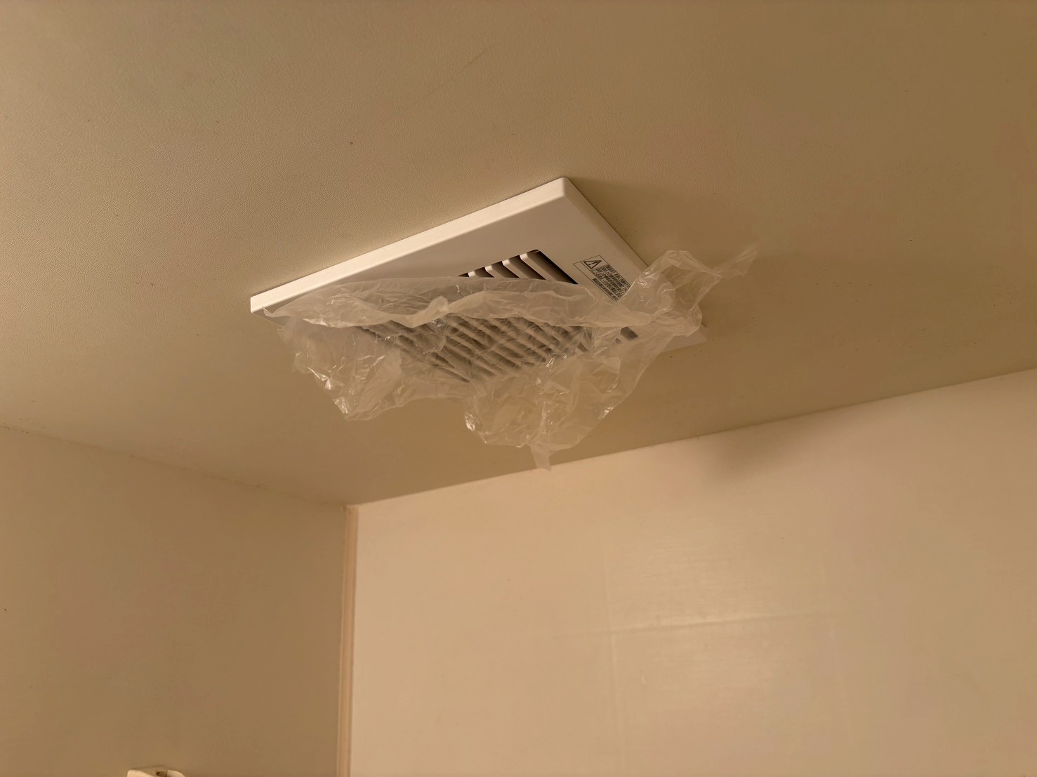 浴室換気扇が作動しないとご相談がありましたので現調したところ、トイレ換気扇の不具合も見られたため両方の換気扇交換を実施いたしました。